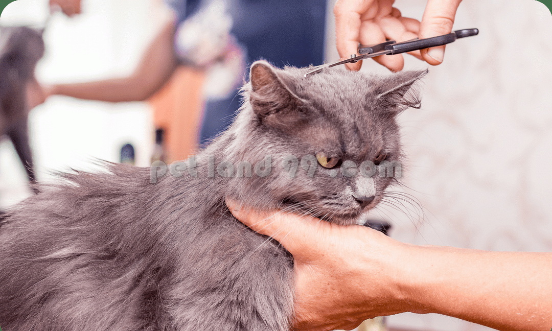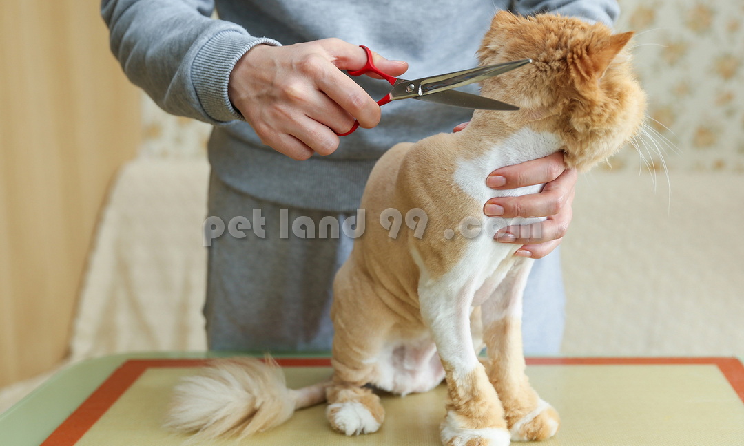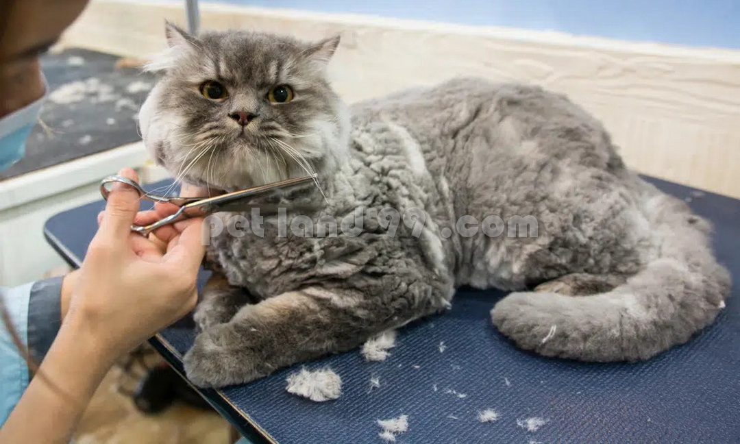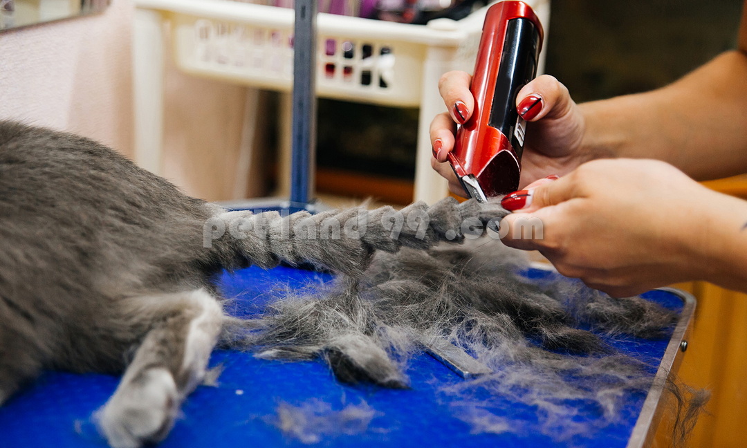 شامل جدا کردن گره ها و پوشش های مات شده روی بدن گربه است.